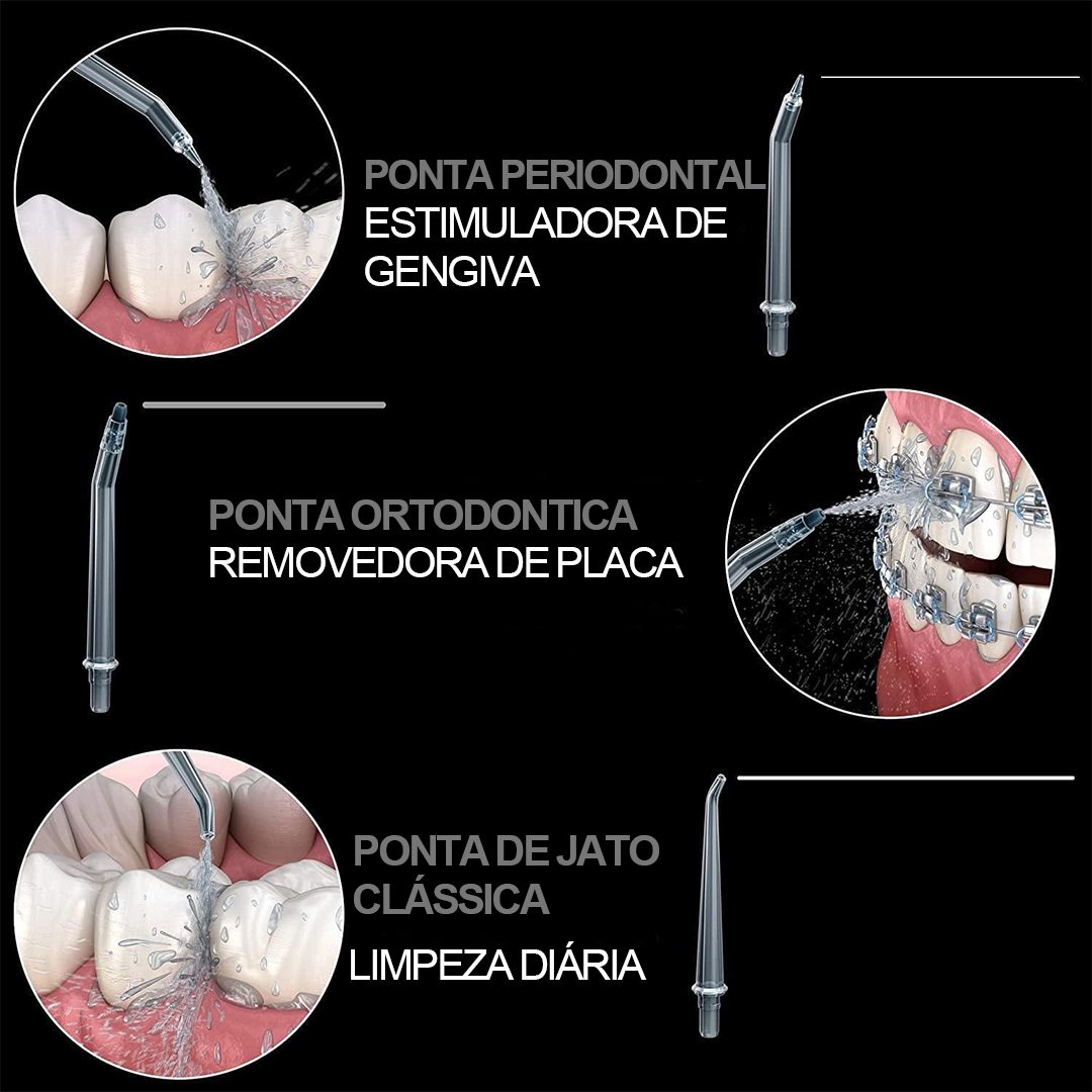 Irrigação dental melhorada com microbolhas de ar que penetram em profundidade e eliminam ainda mais placa bacteriana e bactérias para umas gengivas e dentes mais saudáveis.